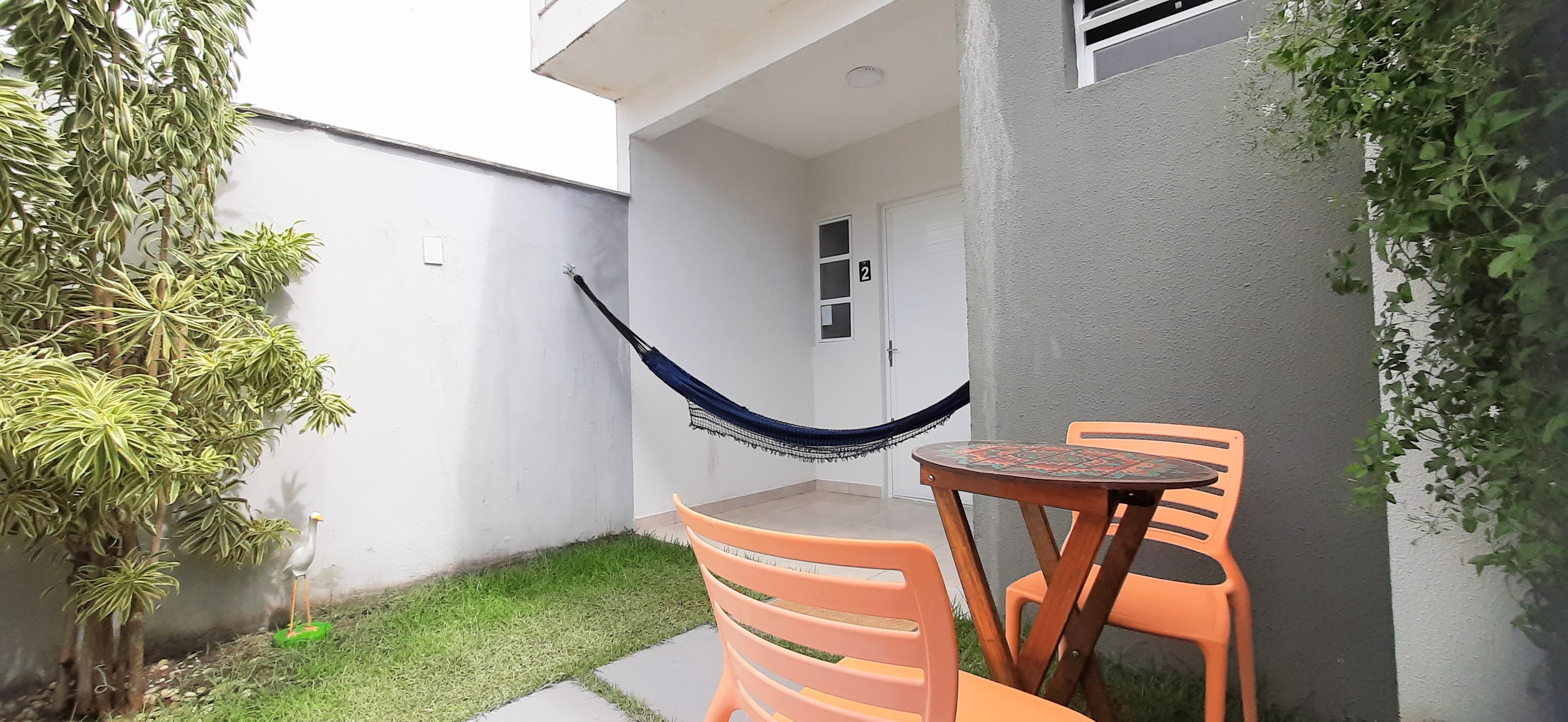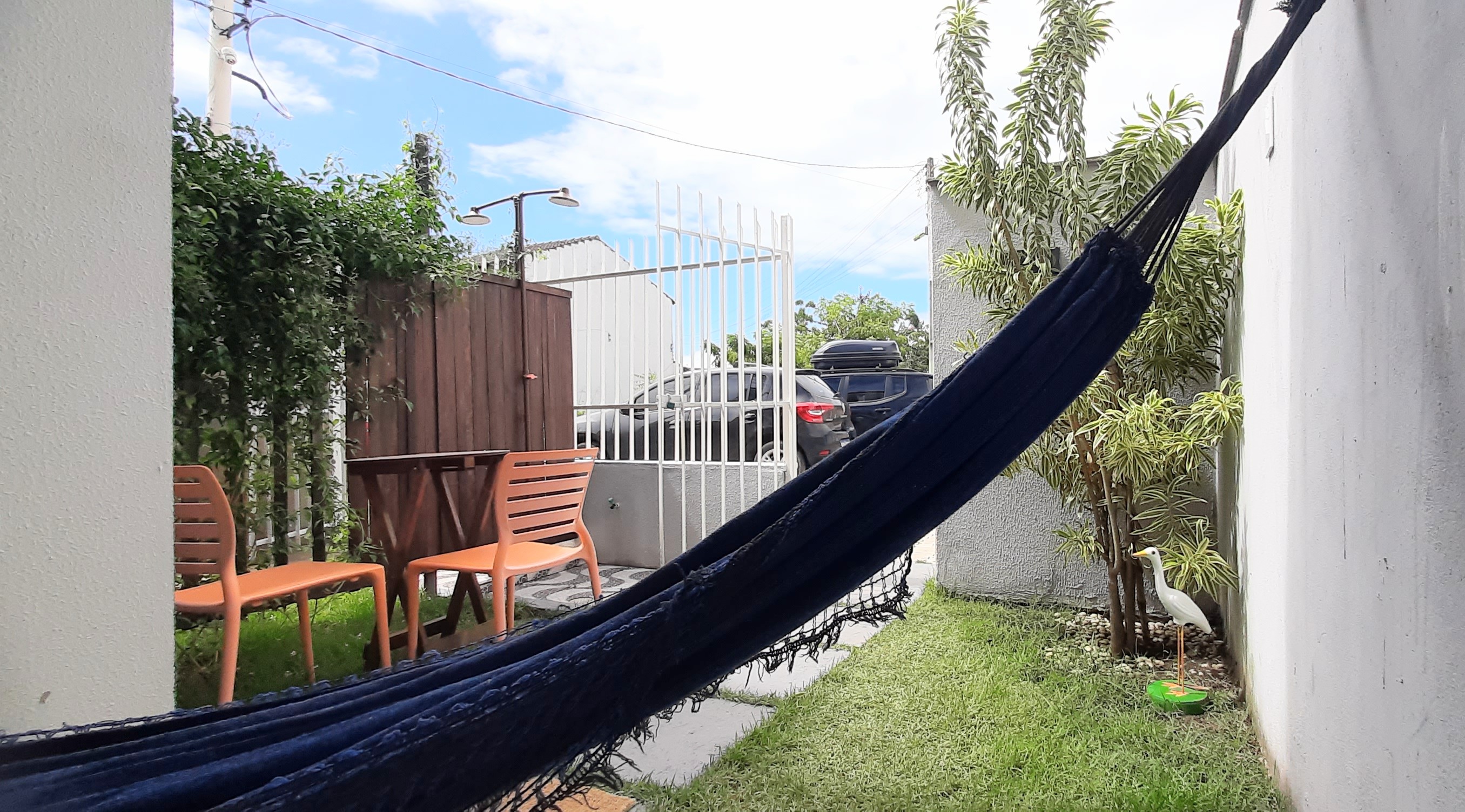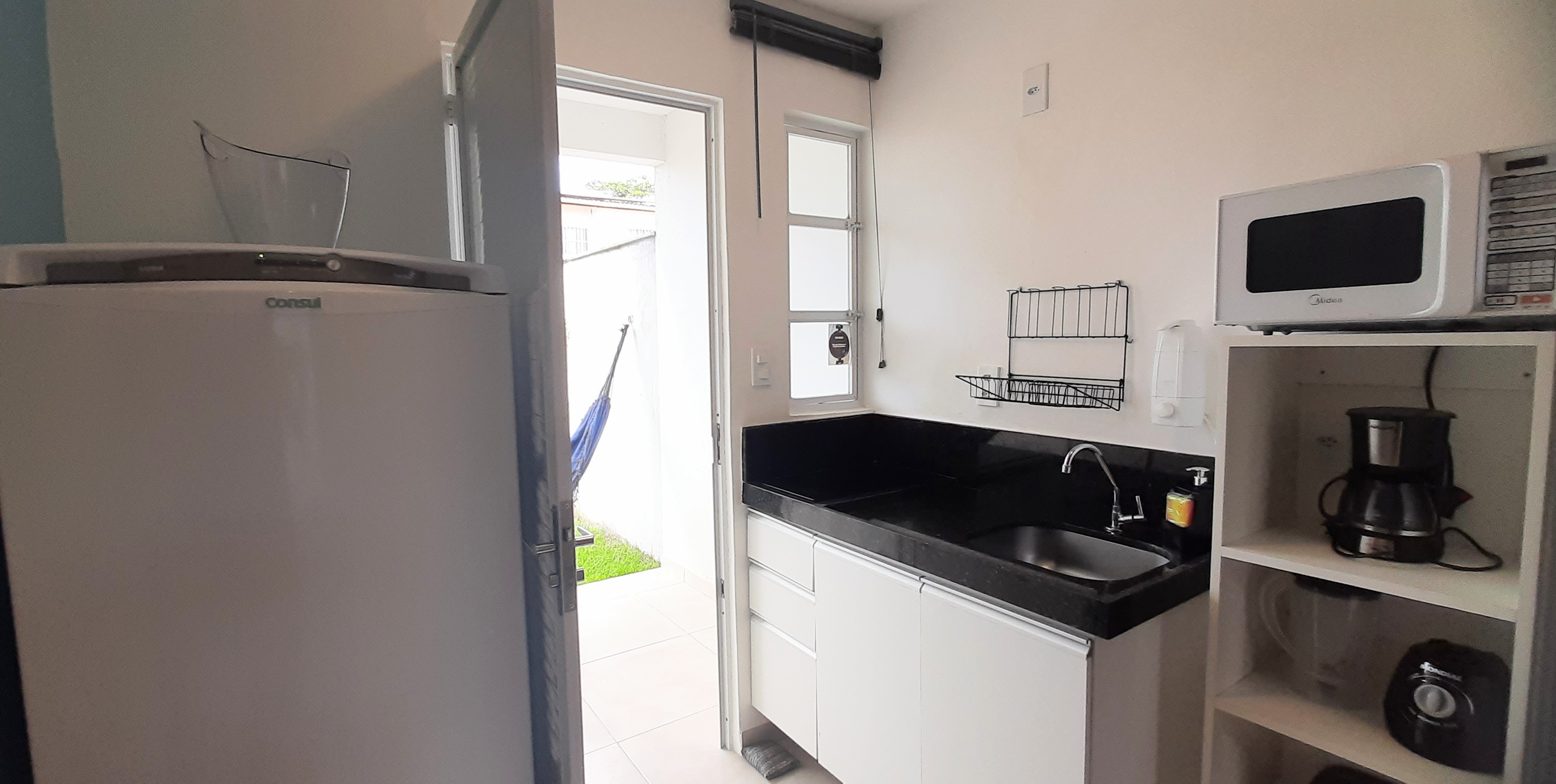 Composto por 1 cama de casal 1 cama de solteiro (com enxoval), wi-fi fibra ótica, Smart TV com Netflix, cozinha completa (pratos, talheres, copos, panelas, micro-ondas, cafeteira, liquidificador, fogão cooktop de indução, geladeira, filtro de água), varanda nascente com rede integrada ao jardim com chuveirão, área de lavanderia com varal.