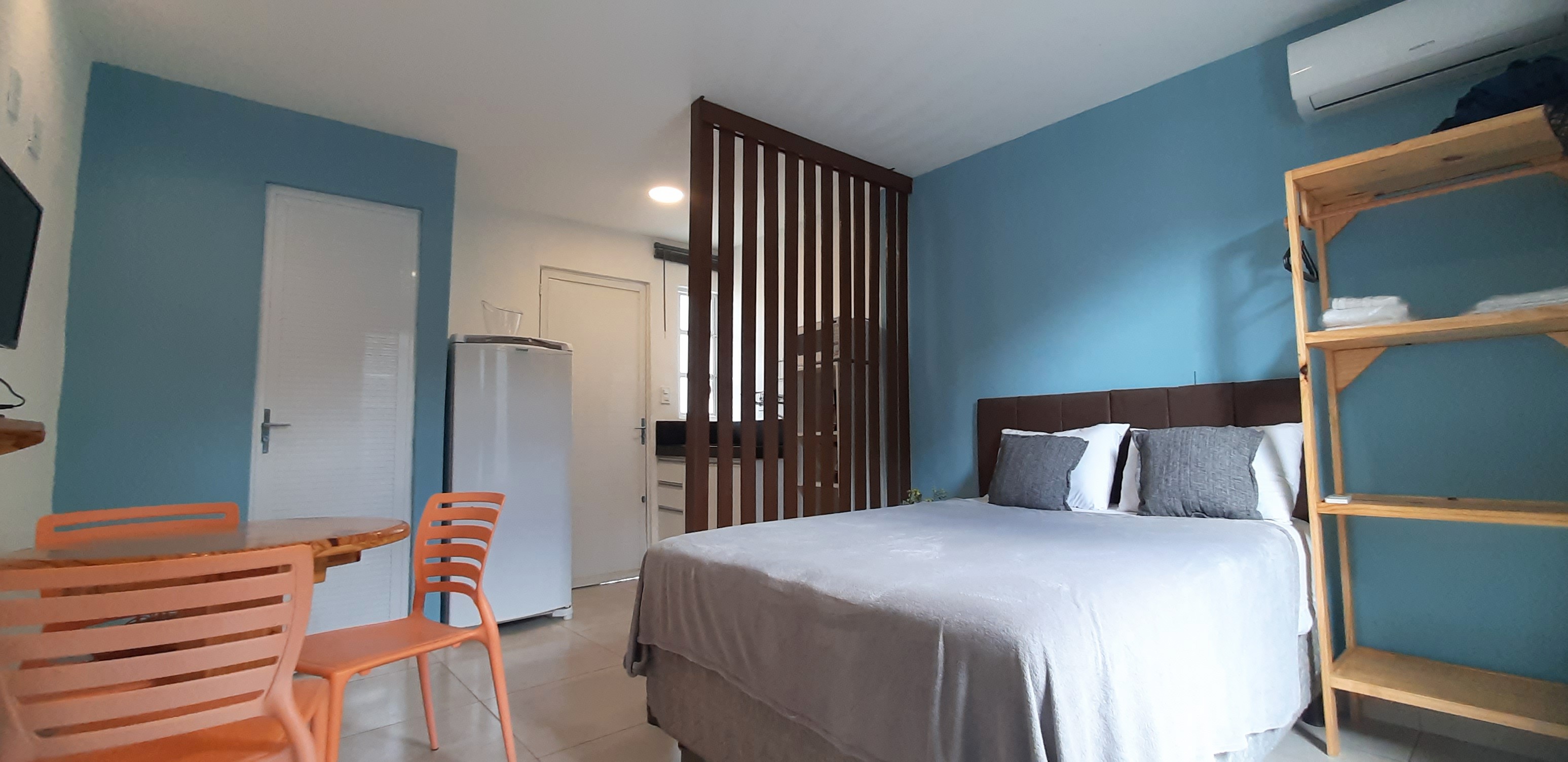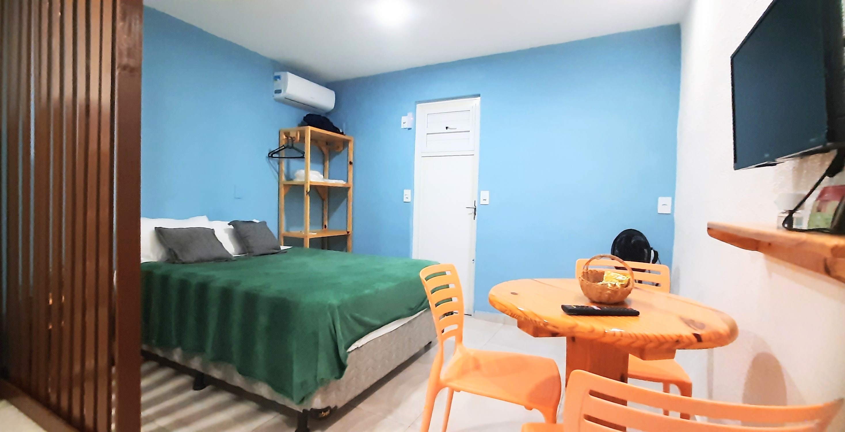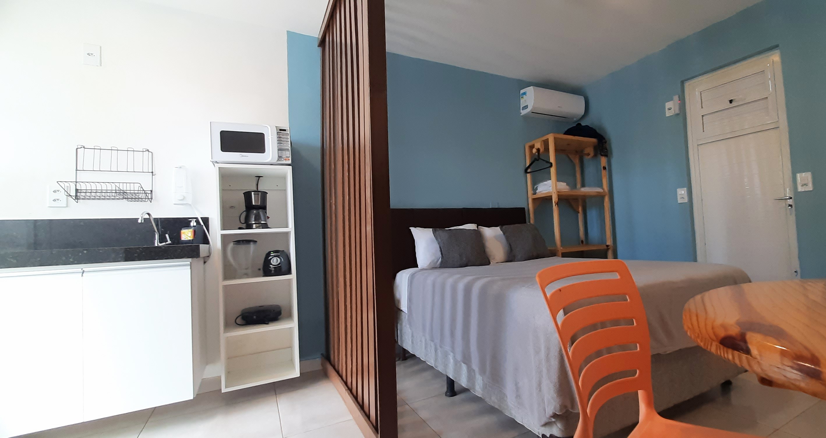 Composto por 1 cama de casal 1 cama de solteiro (com enxoval), wi-fi fibra ótica, Smart TV com Netflix, cozinha completa (pratos, talheres, copos, panelas, micro-ondas, cafeteira, liquidificador, fogão cooktop de indução, geladeira, filtro de água), varanda nascente com rede integrada ao jardim com chuveirão, área de lavanderia com varal.