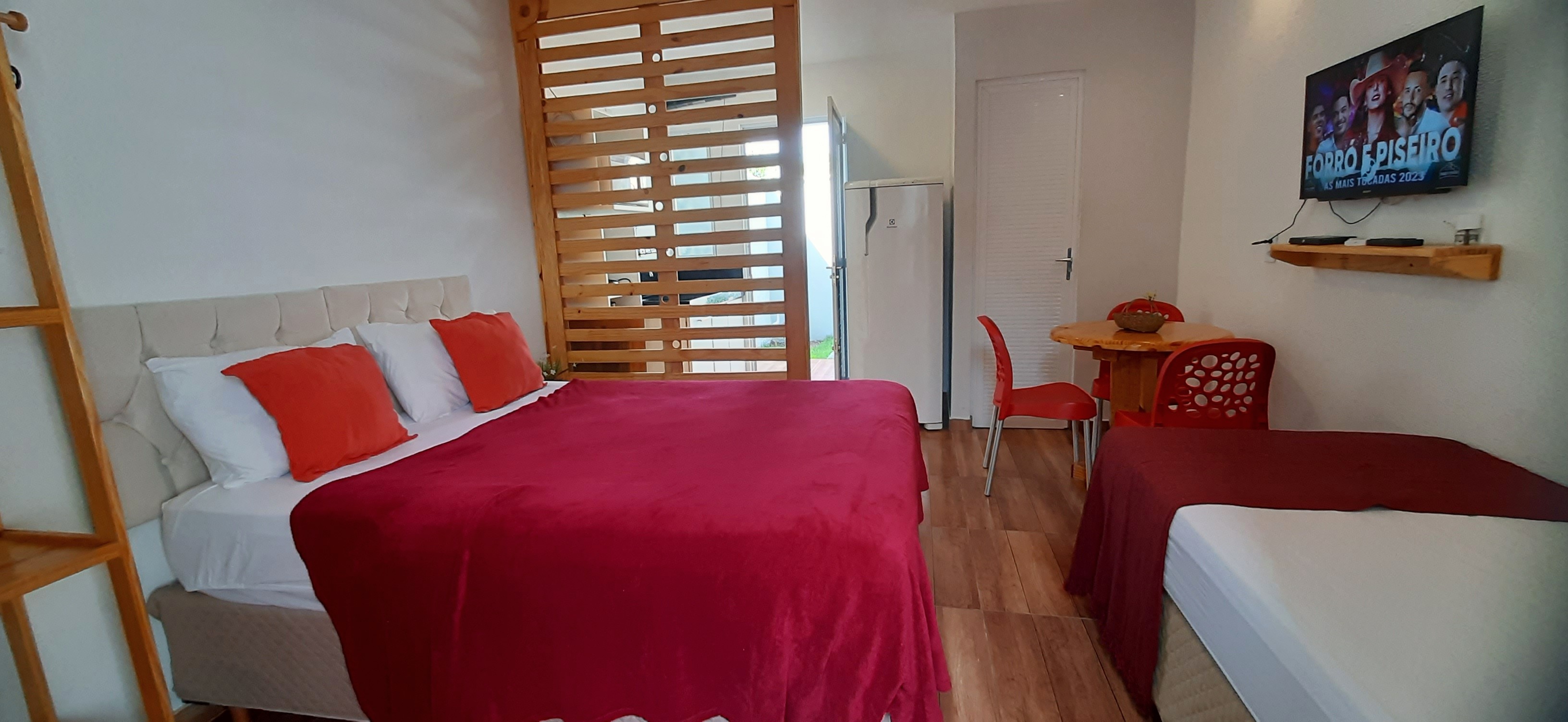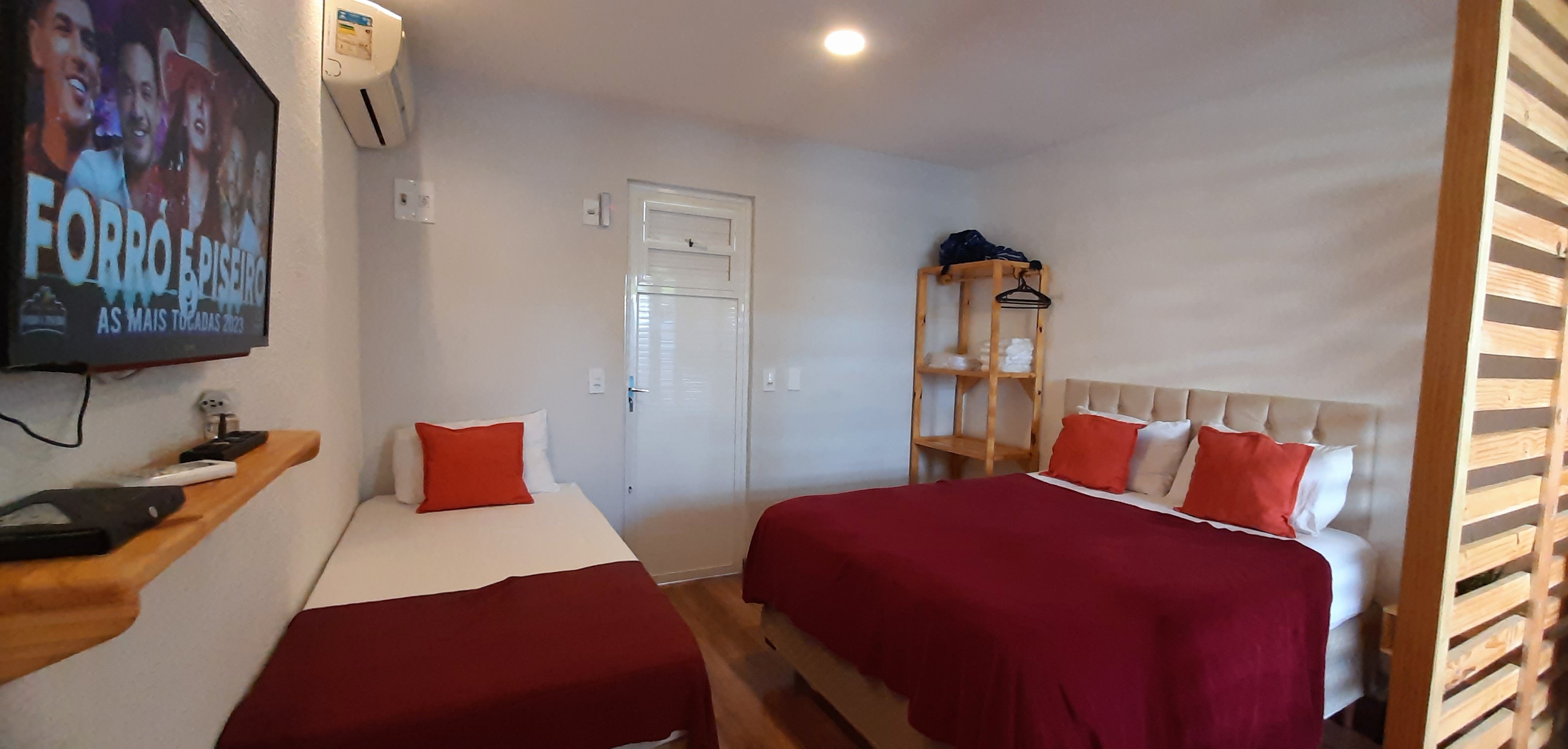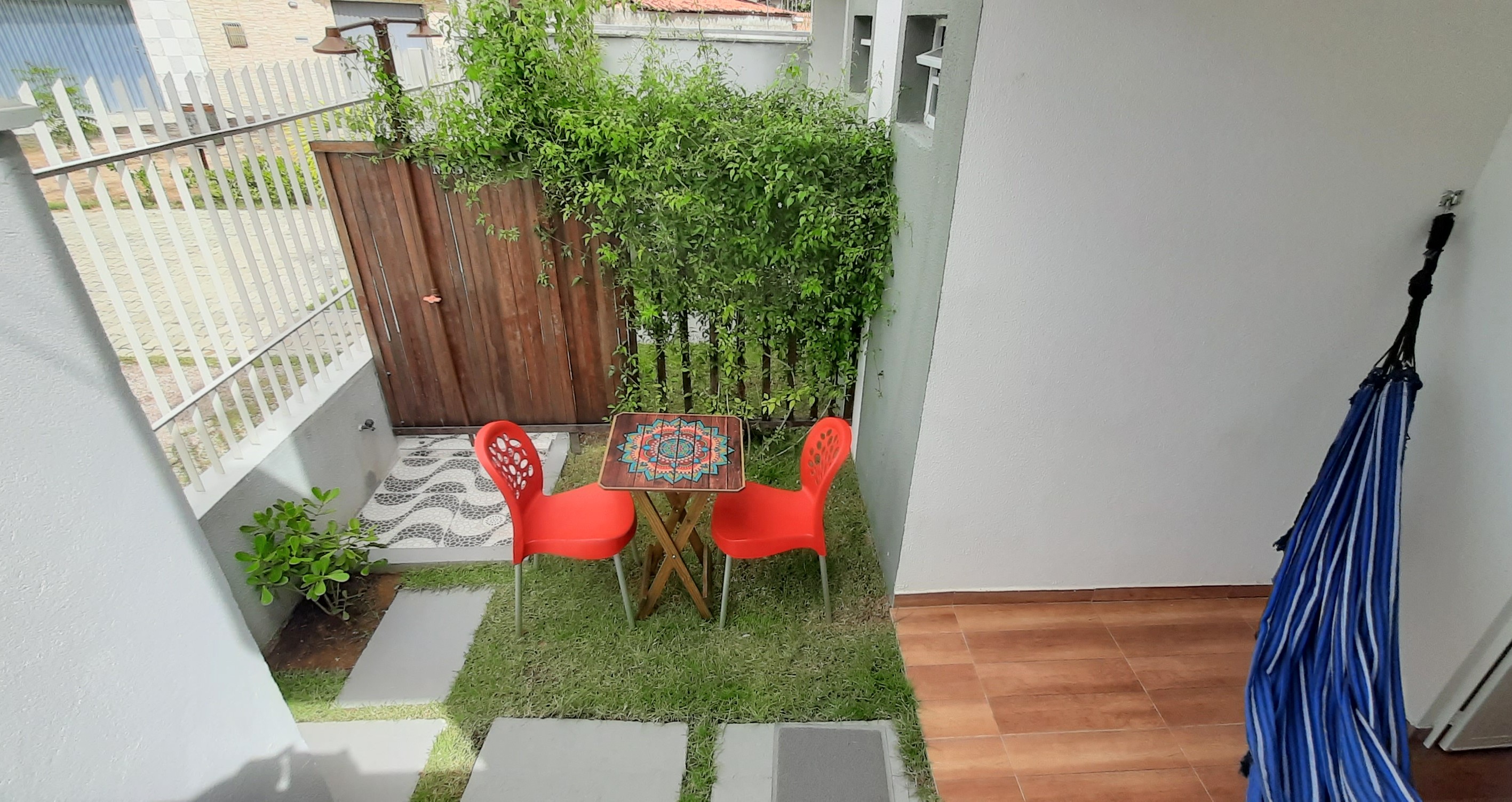 Composto por 1 cama de casal 1 cama de solteiro (com enxoval), wi-fi fibra ótica, Smart TV com Netflix, cozinha completa (pratos, talheres, copos, panelas, micro-ondas, cafeteira, liquidificador, fogão cooktop de indução, geladeira, filtro de água), varanda nascente com rede integrada ao jardim com chuveirão, área de lavanderia com varal.